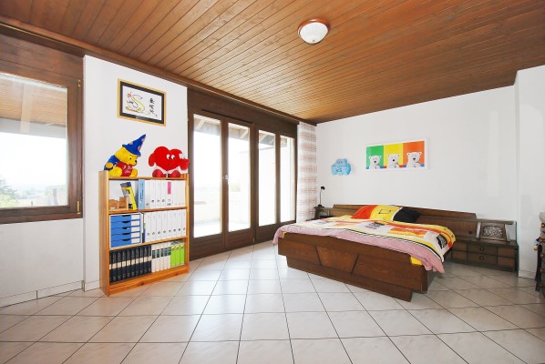 Das Dachgeschoss mit zwei grossen Zimmern und einem kleinen Bad mit Dusche, WC und Lavabo können als Rückzugsort für Teenager oder Elternteil genutzt werden.