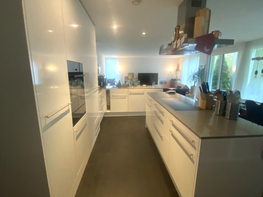 · Hochwertige und moderne Küche mit Kochinsel sowie Essbereich