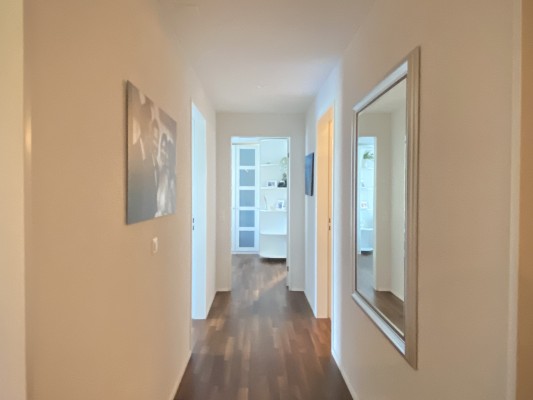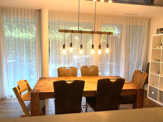 Wir vermieten per 01.02.2024 diese moderne 5.5 Zimmerwohnung im Erdgeschoss. Die Wohnung ist optimal geeignet für Menschen die noch ein wenig Garten und Grillplatz um sich haben wollen, mit oder ohne Haustiere.