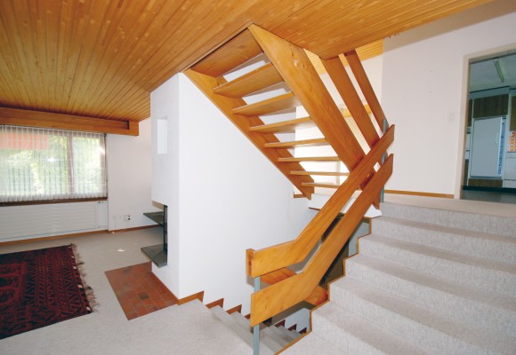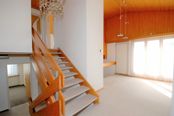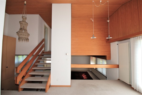 Die Etagen-versetzte Bauweise gewährleistet eine gute, zweckmässige Belichtung aller Räumlichkeiten. Der Innenausbau reflektiert im Allgemeinen den Charakter der 70er- Jahre, die je nach Gutdünken gewisser Modifikationen bedürfen.