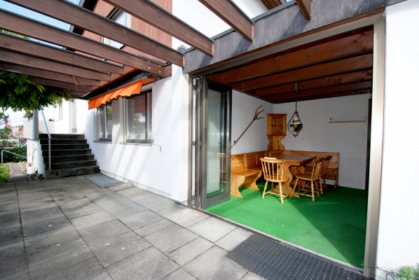 Balkon, grosser Garten mit Sitzplatz und Gartenlaube laden zum Verweilen und Geniessen ein.