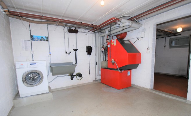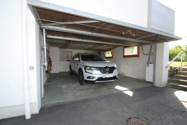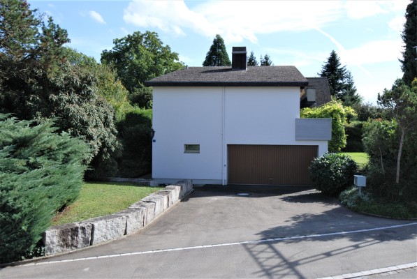 Der Eingangsbereich liegt im Erdgeschoss (Entrée , separate Dusche/WC); im Untergeschoss befinden sich die relevanten Kellerräume. Das Haus ist über die wenig frequentierte Quartierstrasse oder direkt über die Verbindung mit der Doppelgarage erreichbar. Die Treppe führt Sie in den Wohnbereich mit grossem Cheminée. Ein Halbgeschoss höher befinden sich Küche, Essbereich sowie der Ausgang zum Balkon.