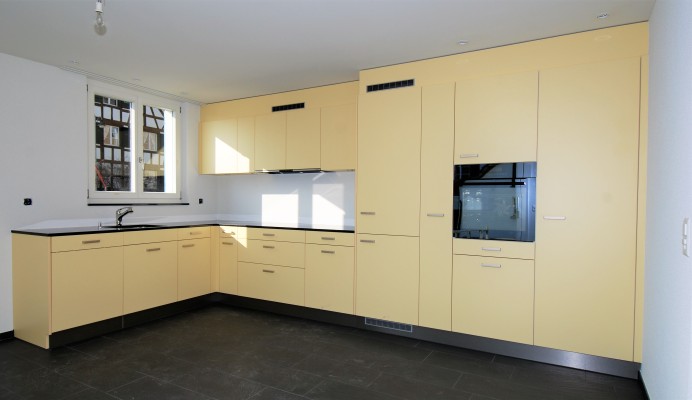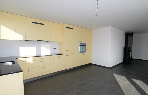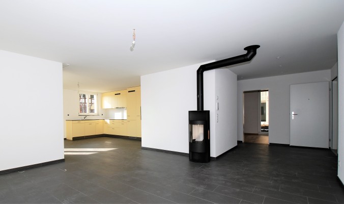 Bei der Wohnung wurde viel Wert auf einen klar strukturierten Grundriss und einen guten Ausbaustandard gelegt. Die lichtdurchfluteten Räume bieten Ihnen die Möglichkeit, Ihr neues Zuhause nach Ihren Wünschen einzurichten. Ein Schwedenofen sorgt für eine behagliche Stimmung. Der Eingangsbereich sowie der Wohnraum sind mit Fliesen versehen, die Zimmer mit Parkett. Die offene Küche mit Granitabdeckung, Glaskeramikkochfeld und Geschirrspüler und einer funktionale Anordnung, lädt zum Kochen ein.