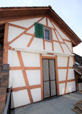 An ruhiger, sonniger Lage vermieten wir in der historischen Liegenschaft an der Landstrasse 16, eine 5.5 Zimmer-Dachmaisonette - Wohnung mit Terrasse. Die Liegenschaft wurde vor einigen Jahren kernsaniert, der Dachstock neu aufgebaut.