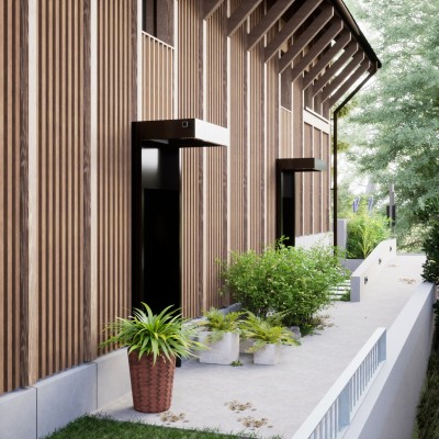 Die unverwechselbare Fassade aus Holz besticht mit durchdachten Kupfer-Akzenten und macht neugierig auf das Innere, welches mit Raffinesse und Originalität beeindruckt.