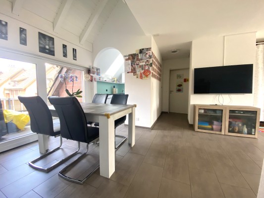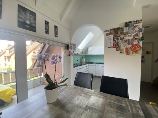 Die sehr gepflegte Maisonette-Wohnung verfügt über ein helles Wohn-/Esszimmer. Die teilweise offene Küche ermöglicht es, seine Gäste stets zu unterhalten und mit Ihnen zu interagieren. Verwöhnt von der Abendsonne, kann man auf einem der zwei Balkone die letzten Sonnenstrahlen geniessen. Die beiden Schlafzimmer haben einen direkten Zugang zum Bad.