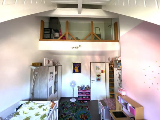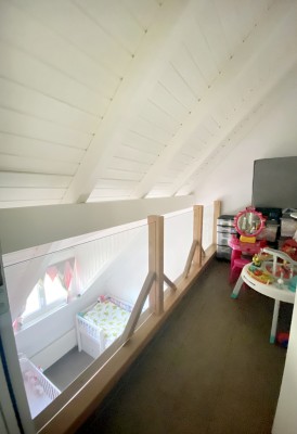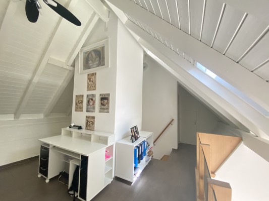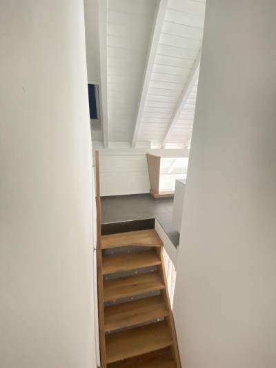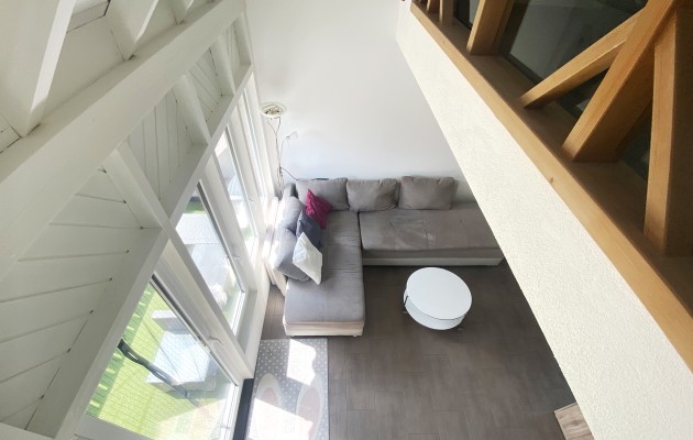 Eine schöne Holztreppe führt auf die Galerie mit angegliederter Büroecke einer weiteren Nasszelle mit Dusche und WC und einem kleinen Estrich.