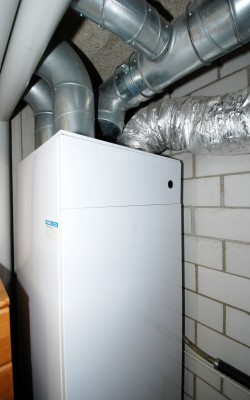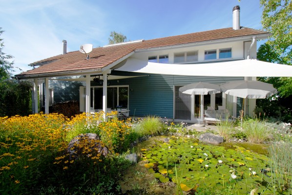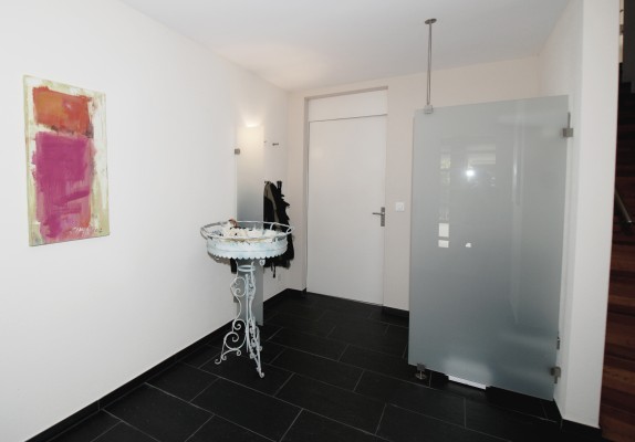 Das Haus ist mit vielen technischen Gadgets realisiert worden. Die kontrollierte Lüftung arbeitet durch die Kombination mit einer Wärmerückgewinnungsanlage sehr energieeffizient. Mittels Erdsonde werden die Räume via Fussbodenheizung/Radiator beheizt.