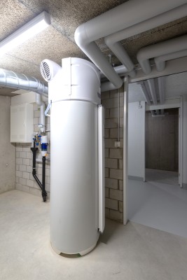 Die Energieerzeugung erfolgt mittels Erdsonden. Beheizt werden die Räume mit einer Niedertempera-turbodenheizung.