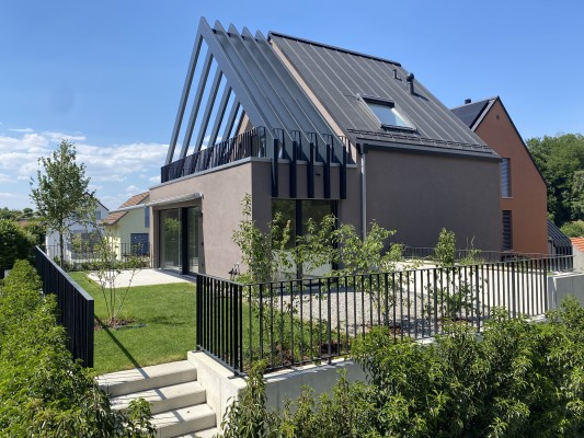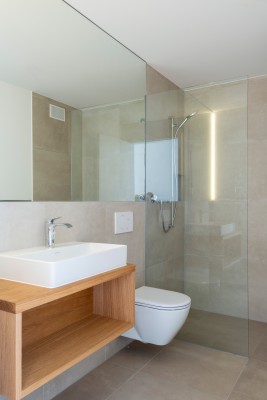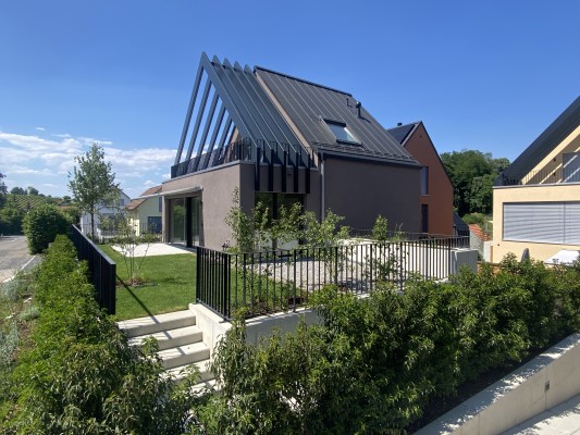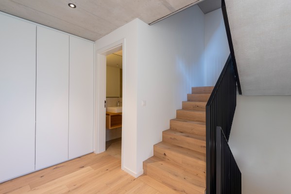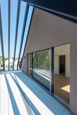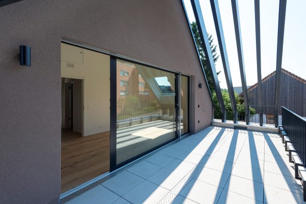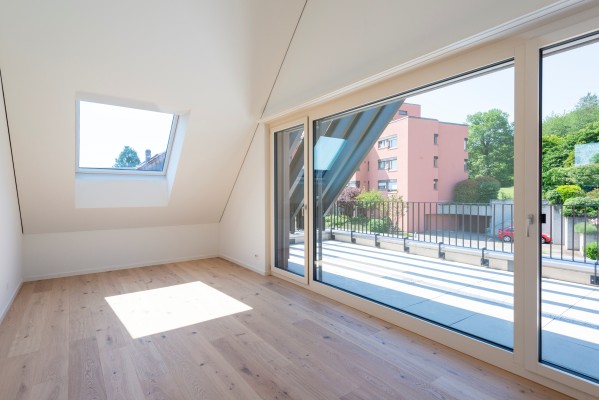 Der grosszügige Masterbedroom im Dachgeschoss ist ein weiterer Eyecatcher; das Dachfenster zum Bestaunen der Sterne und eine grosse Terrasse sowie ein weiteres Badezimmer auf dieser Etage runden das Angebot ab. Keller- und Technikräume befinden sich im Untergeschoss neben dem direkten Zu-gang zur Tiefgarage.