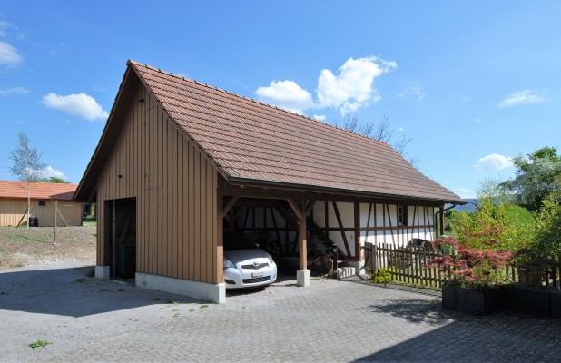 Unterkellert ist diese Liegenschaft nicht, aber in den umliegenden Remisen können Sie Ihre Gerätschaften und Fahrzeuge aller Art unterstellen, Ihren Vorrat einlagern oder Holz für den finnischen Specksteinofen trocknen. Im Gibelraum der Garage bestehen Ausbaumöglichkeiten.