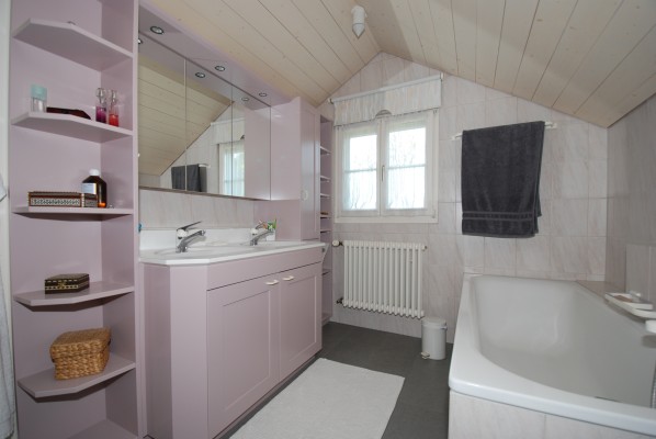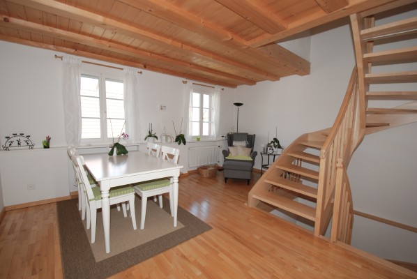 Im Erdgeschoss befinden sich neben dem Entrée mit eingebauter Garderobe die Küche, das Esszimmer, ein Wohnzimmer sowie eine Nasszelle mit Dusche und WC. Eine wunderschön gearbeitete Holztreppe führt ins Obergeschoss. Der grosszügige Vorplatz kann vielseitig genutzt werden. Das Schlafzimmer mit dem Bad en Suite ist Ihr ganz persönlicher Rückzugsort. Das Dachgeschoss ist individuell nutzbar.