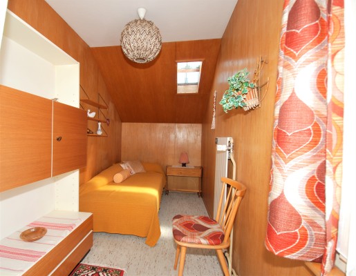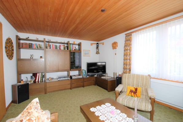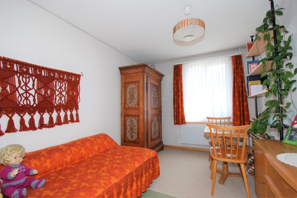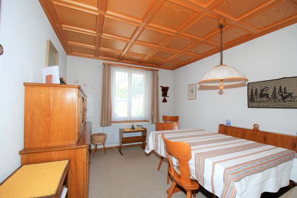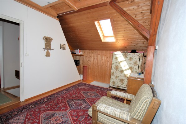 Dieses charmante Objekt birgt viel Potential. Im Erdgeschoss sind das «kultige Badezimmer », «Oma›s» Küche mit TIBA-Herd, das Esszimmer, das Wohnzimmer und ein «Stübli» zu finden. Die Räume sind eher klein. Die Raumaufteilung kann jedoch bei einer Renovation angepasst werden. Über die Holztreppe kommen Sie ins Obergeschoss. Aktuell befinden sich hier vier Räume, wobei das Nebenzimmer unbeheizt ist. In allen Zimmern sind schöne, alte Tannenriemenböden verlegt.