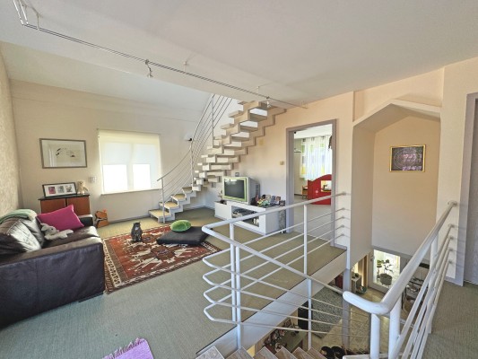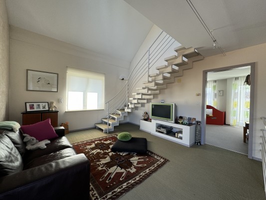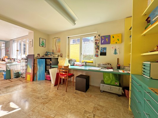Das Haus bietet Ihnen viel Raum zum Leben. Im Erdgeschoss wird gekocht, gegessen, gespielt und gechillt. Im Verbindungstrakt Garage/Wohnhaus können Sie sich Ihr Atelier, Ihr Büro oder Ihren Therapieraum einrichten.