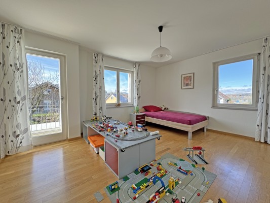 Dieses familienfreundliche 6½-Zimmer-Haus bietet alles, was Sie für ein komfortables und harmonisches Familienleben benötigen. Von grosszügigen Wohnbereichen bis hin zu liebevoll gestalteten Aussenanlagen wurde an alles gedacht, um den Bedürfnissen einer Familie gerecht zu werden.