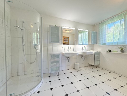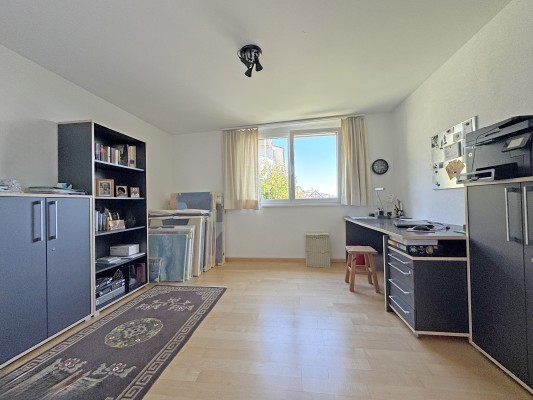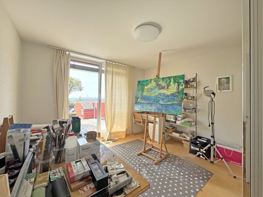 Ein weiteres Zimmer sowie ein Nassraum mit Dusche und WC befinden sich ebenfalls auf dieser Etage. Im Dachgeschoss geniessen Sie mit drei verschieden grossen Zimmern – zwei davon mit Zugang zur Terrasse – sowie einem Nassraum die ruhigen Stunden.