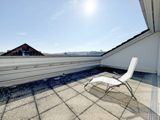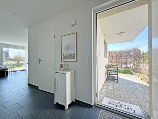 Auf dem Sitzplatz gegen Süden geniessen Sie die Abendsonne und den Ausblick ins Grüne. Ihr Auto parkieren Sie bequem in der Tiefgarage oder auf dem dazugehörigen Aussenparkplatz.