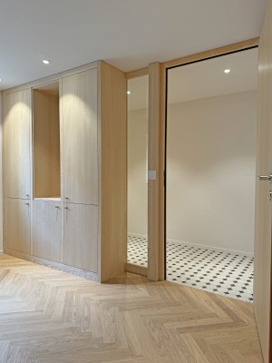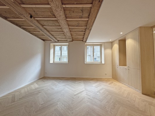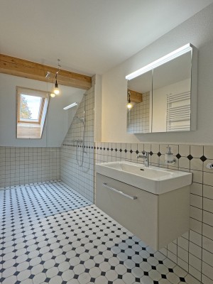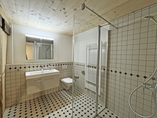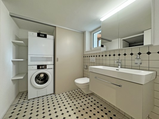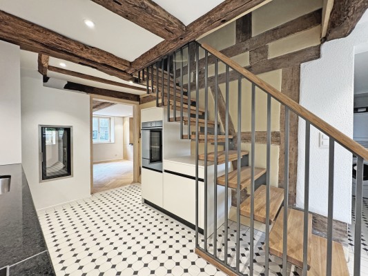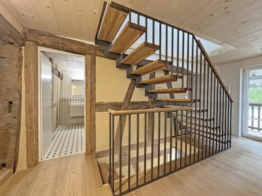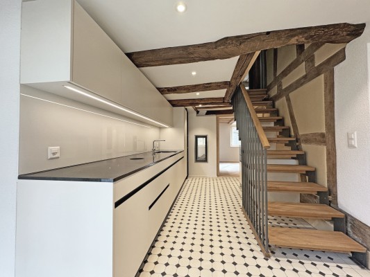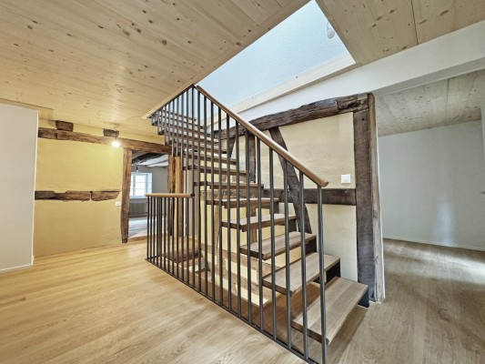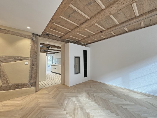 Das ehemalige Bauernhaus wurde vollumfänglich renoviert und saniert. Alte Bauteile wie Balkenlagen, Holzdecken etc. wurden belassen und mit moderner Architektur kombiniert. Bodenbeläge im «Retrolook» passen ausgezeichnet ins Bild. Holz bestimmt den Ausbau und verleiht dem Wohnen gemütliche Wärme und Behaglichkeit.