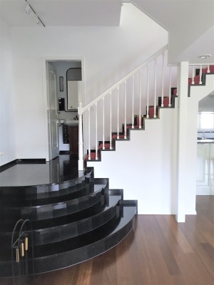 abgestimmten Farbkonzepte und der hohe Ausbaustandard zu erwähnen. Im oberen Stockwerk verleiht das offene Treppenhaus