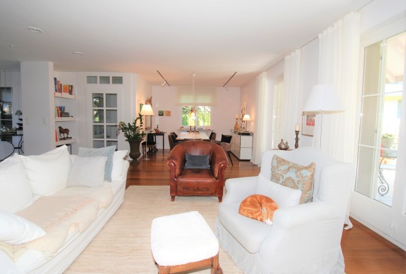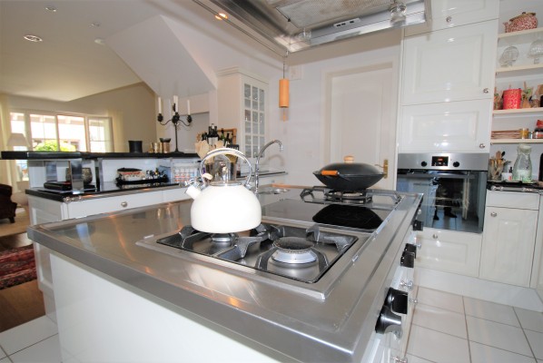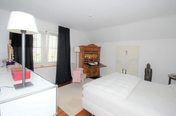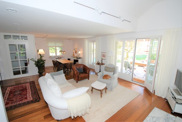 Die Küche mit ihren hellen Holzfronten, der Granitabdeckung und der Kochinsel zeigt sich freundlich und garantiert kulinarische Höhenflüge. Der grosszügige Wohnbereich wird dank bodentiefen Fenstern mit viel Tageslicht erfüllt und sorgt mit dem Cheminée für ganz besondere Wohlfühlmomente.
