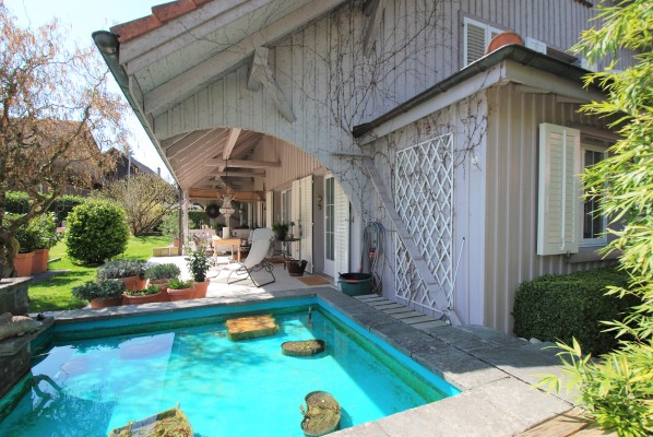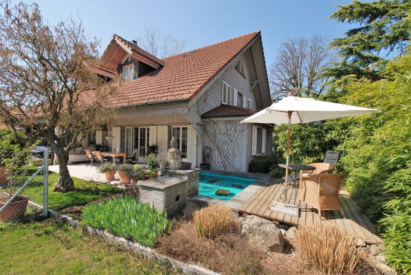 Ein weiteres Highlight ist der Garten. Üppiges Grün umgibt das charmante Haus und mit dem schön angelegten Teich fühlen Sie sich wie im Paradies.