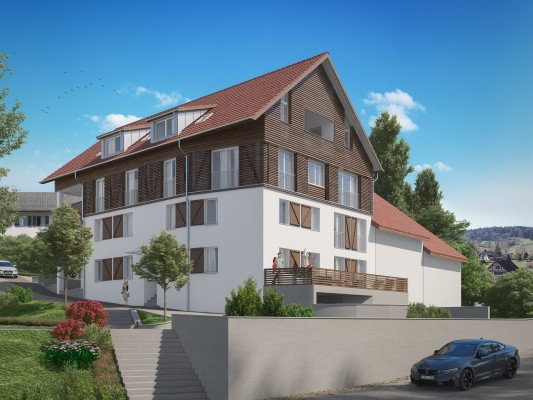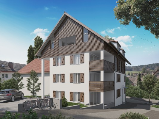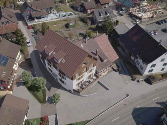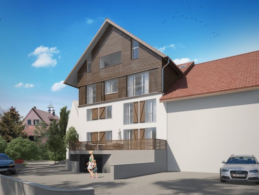 Das Projekt umfasst einen Neubau acht 3.5 Zimmer Eigentumswohnungen. Die Einen liegen in Richtung Rebberg, die Anderen in Richtung Kirche.