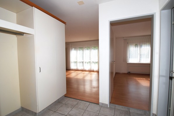 Die Wohnung verfügt über ein Entrée mit Garderobe, einer Küchenzeile, einem Raum für Wohnen/Essen, einem Schlafzimmer und dem modernen Bad. Die Räume sind hell. Der Ausbau ist praktisch und pflegeleicht. Ein sonniger Sitzplatz und die dazugehörige Rasenfläche wirken raumerweiternd und laden in den warmen Monaten zum Verweilen ein.
