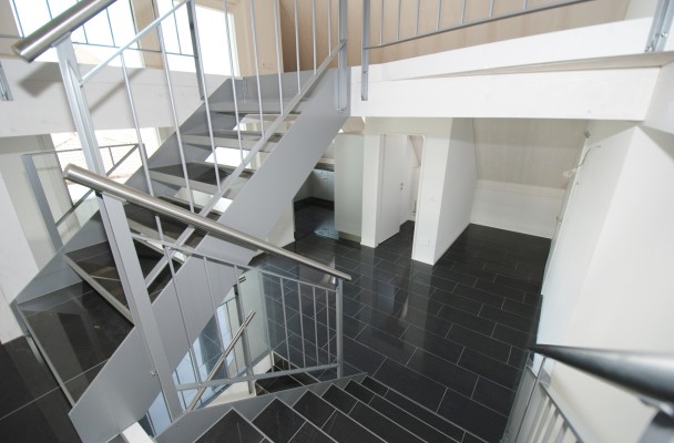 Die Treppe nach unten führt Sie ins Wohnzimmer mit vielen Möglichkeiten die Möbel zu stellen, da der Raum fast 50m2 bietet. Ebenfalls auf dieser Ebene das Schlafzimmer mit einer Raumhöhe von 3.8m und das Badezimmer mit den gewohnten Annehmlichkeiten.