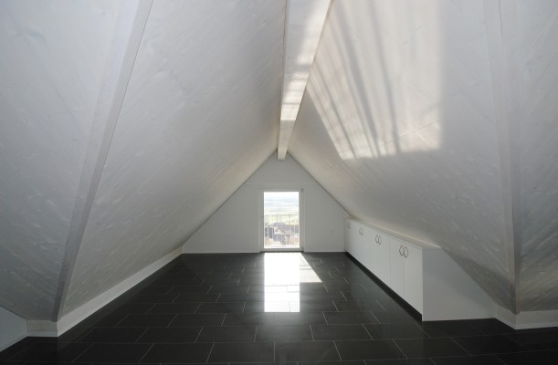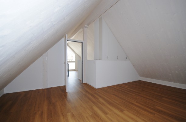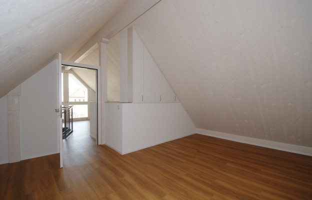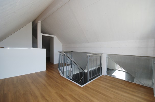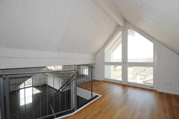 Über dem Eingangsbereich liegt das offenen "Studio" und ein Zimmer welches sich als Schrankzimmer am besten eignet.