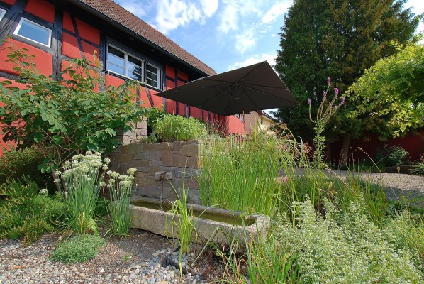 Ein traumhafter Garten mit heimischen Pflanzen und Natursteinen aus der Umgebung. Ein einzigartiges Paradies für Naturliebhaber. Zwei grosse Gartenloggias sind von riesigen Schirmen überdacht, die sowohl Sonneneinstrahlung als auch Regen abhalten. Die beiden XXL-Elektrogrills bieten Grillvergnügen für grosse Gesellschaften.