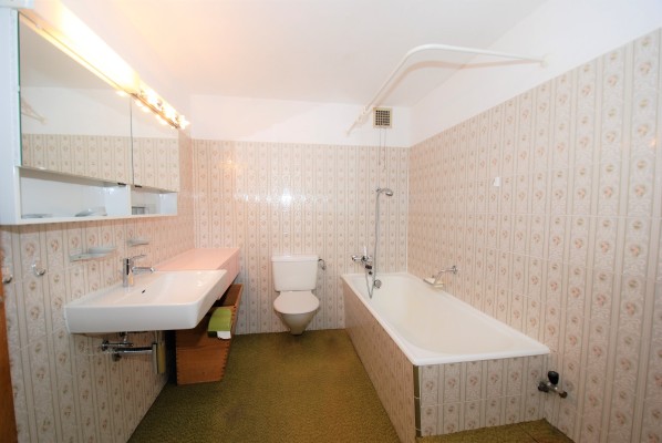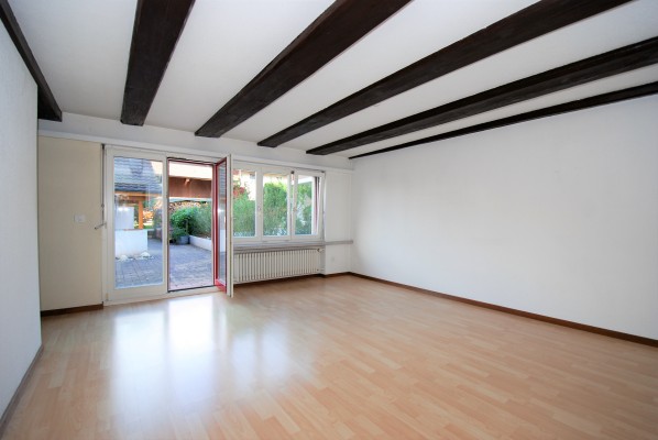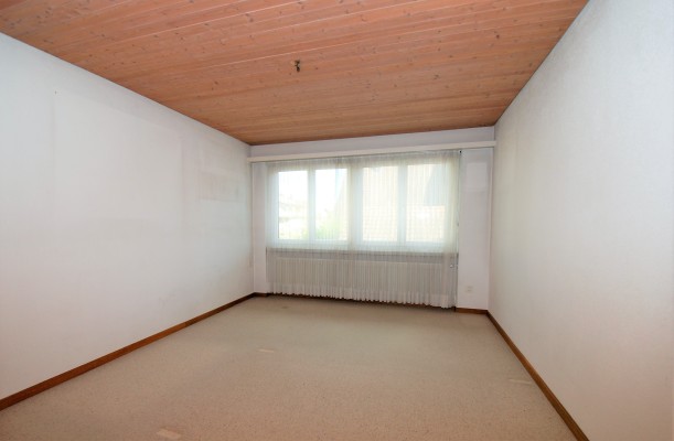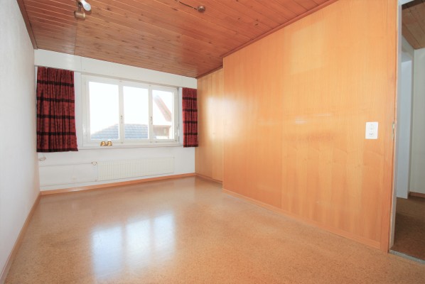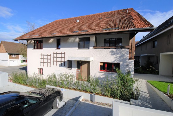 Der allgemeine Wohnbereich ist im Parterre mit direktem Zugang zu den Sitzplätzen. Im Obergeschoss finden Sie drei Zimmer sowie eine Nasszelle. Hier ist auch der separate Eingang zur kleinen Einliegerwohnung mit Küche, Stube, Schlafzimmer und Bad. Die beiden Wohneinheiten sind durch ein separates Treppenhaus getrennt.