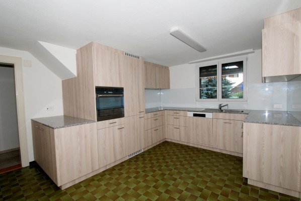 Die geräumige Küche, das Ess-/Wohnzimmer und die Nasszellen mit Dusche und Badewanne befinden sich im Erdgeschoss. Im Obergeschoss befinden sich drei grosse Schlafzimmer, sowie eine Toilette. Im grossen Dachgeschoss können weitere Räume realisiert werden.