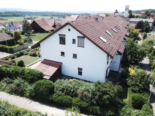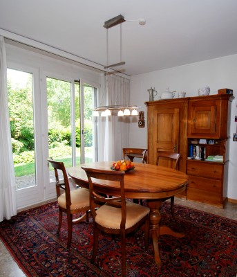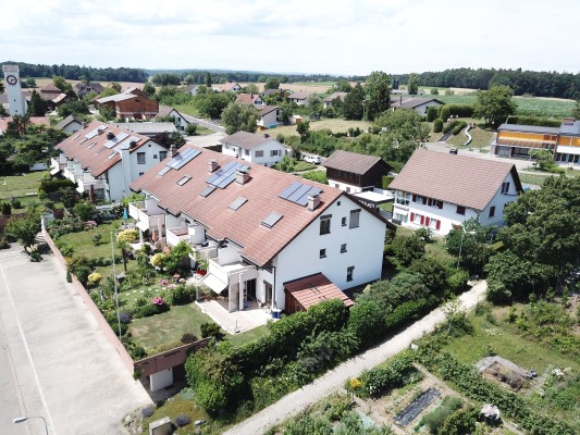 Das Eckhaus bietet Platz zum Wohnen und Geniessen. Die offene Küche mit dem gemütlichen Esszimmer und das helle Wohnzimmer laden zu gemütlichen Stunden mit Freunden und Familie ein. Auf dem gedeckten Sitzplatz können Sie Ihre Blicke in die Ferne schweifen lassen.