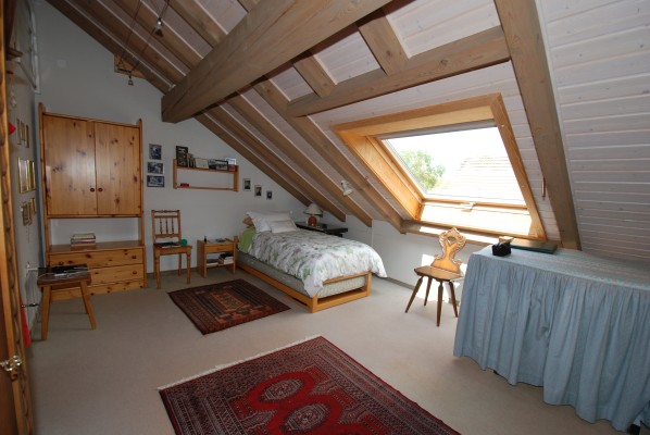 Die Raumaufteilung im Dachgeschoss ist mit einem grossen Zimmer und einem Raum mit Schlafgalerie sehr originell. Auf dieser Etage können Sie sich eine persönliche Insel schaffen.