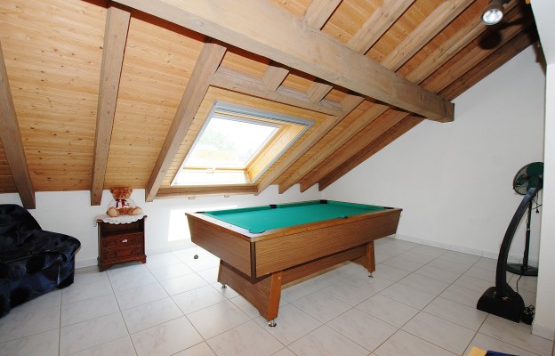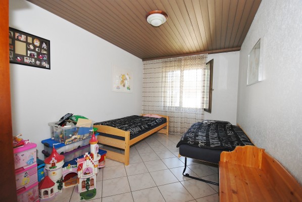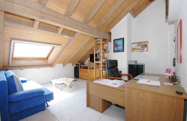 Das Dachgeschoss mit zwei grossen Zimmern und einem kleinen Bad mit Dusche, WC und Lavabo können als Rückzugsort für Teenager oder Elternteil genutzt werden.