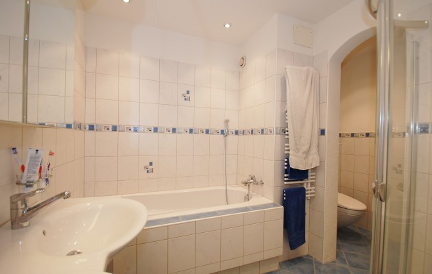 Im ersten Obergeschoss befinden sich drei grosszügige Schlafzimmer sowie eine Nasszelle mit Badewanne, Dusche, Doppellavabo und WC.