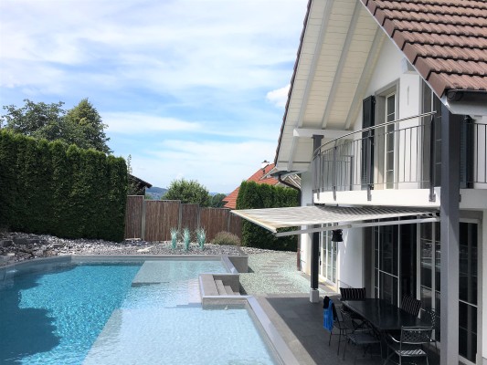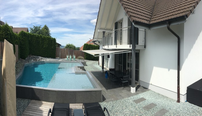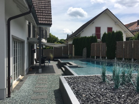 Die Sommer werden wärmer - es gibt nichts Schöneres, als sich im kalten Wasser des Swimmingpools zu erfrischen. Eine ansprechende, pflegeleichte Anlage befindet sich direkt vor Ihrer Sitzplatztür. Was will man(n)/frau mehr?