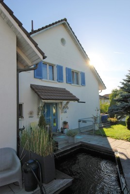 Das einseitig angebaute 5½-Zimmer-Einfamilienhaus wurde 1994 gebaut. Es überzeugt durch die qualitativ hochwertige Bauweise, den pflegeleichten Innenausbau mit keramischen Bodenplatten in allen Räumen und die gut besonnte Lage gegen Südwesten.