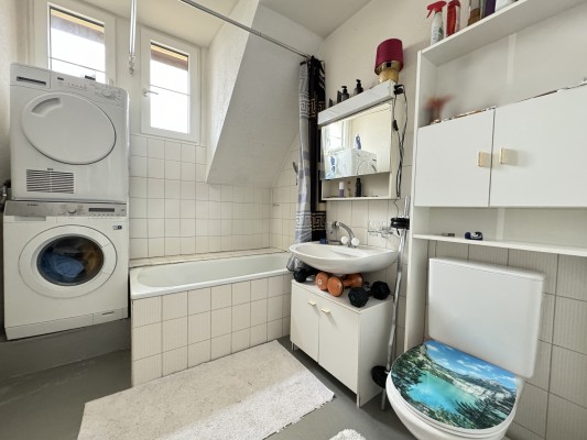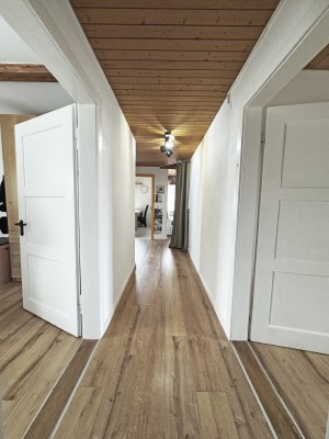 Über das geräumige Treppenhaus gelangen Sie in den 3. Stock. Nun heisst es «hereinspaziert» in die gute Stube. Das Entrée/der Korridor ist geräumig und führt uns in die verschiedenen Wohnräume. Zwei Schlafzimmer, eine Nasszelle mit Waschturm, die kürzlich renovierte Küche und der grosse Ess-/Wohnbereich, so gestaltet sich Ihr neues Zuhause.