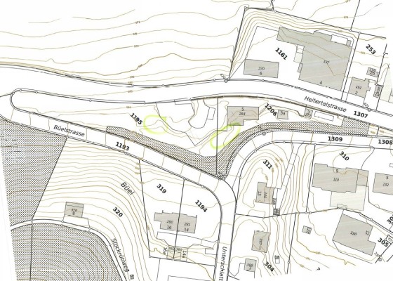 Ein Teil einer Parzelle ist als Landwirtschaftsland ausgewiesen.
